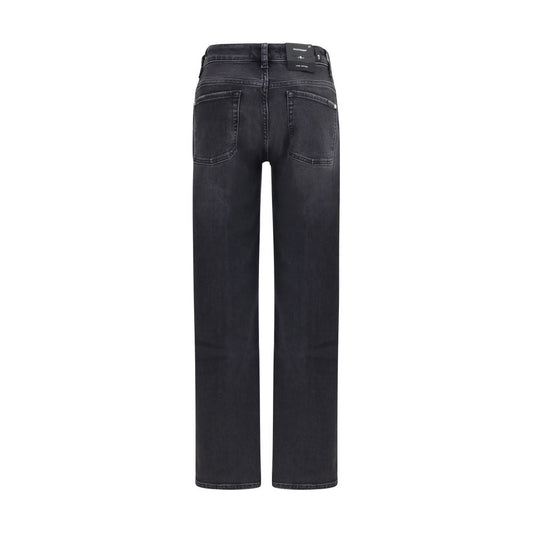 7FOR Black Cotton Straight-Leg Jeans